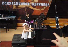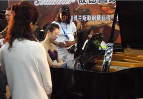 此次博蘭斯勒鋼琴展會(huì)現(xiàn)場(chǎng)展出了價(jià)值300多萬的博蘭斯勒155周年紀(jì)念版鋼琴。此臺(tái)鋼琴也可謂是博蘭斯勒鋼琴百年精湛工藝的一個(gè)縮影。這款特別的尤里烏斯·博蘭斯勒紀(jì)念版鋼琴,是公司成立155周年之際,為紀(jì)念尤里烏斯·博蘭斯勒對(duì)音樂的巨大貢獻(xiàn),并為他給博蘭斯勒家族留下流傳百年的無價(jià)世襲遺產(chǎn)表示深深的崇敬而特地制作的。博蘭斯勒家族后代對(duì)先人所取得的偉大成就和貢獻(xiàn)的崇拜、感激之情都深深凝聚在這架鋼琴上。博蘭斯勒鋼琴重要獎(jiǎng)項(xiàng)都銘刻在這架尤里烏斯.博蘭斯勒紀(jì)念版的徽章上,做工考究的譜架和琴腿盡顯鋼琴的優(yōu)雅典美,制作大師近乎苛刻的精細(xì)工藝,每一個(gè)細(xì)節(jié)都力求完美,使得這架鋼琴散發(fā)出令人著迷的藝術(shù)風(fēng)采,吸引了眾多觀眾與之留念,反響熱烈,贊嘆喜愛之前溢于言表。