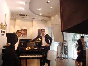 歐米勒孖寶2008鋼琴也瘋狂中國區(qū)巡演廣州見面會(huì)火熱結(jié)束 后,近日驅(qū)車前往博蘭斯勒廣州專賣店,進(jìn)行歐米勒孖寶寫真集的 拍攝工作,博蘭斯勒鋼琴音樂基金會(huì)將為歐米勒孖寶在中國發(fā)行《 歐米勒孖寶-與琴共舞寫真集》。