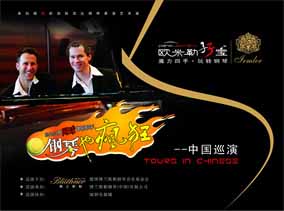 博蘭斯勒音樂(lè)基金會(huì)為推動(dòng)中國(guó)鋼琴事業(yè)的普及,特別把歐米 勒孖寶引進(jìn)中國(guó),從07年10月-08年8月在北京、上海、廣州、 重慶、天津、南京、深圳、武漢、成都、沈陽(yáng)、哈爾濱、青島、大 連、杭州、石家莊、太原等二十幾個(gè)城市進(jìn)行“歐米勒孖寶 2008 鋼琴也瘋狂中國(guó)巡演”。中國(guó)巡演共分三部曲: 07年10-11月第 一部曲之“魔力四手·玩轉(zhuǎn)鋼琴”, 08年2-3月第二部曲之“情 不自禁·與琴共舞”, 08年7-8月第三部曲之“瘋狂奧運(yùn)· 瘋狂 鋼琴”。博蘭斯勒音樂(lè)基金會(huì)還將為歐米勒孖寶在中國(guó)發(fā)行“鋼琴 也瘋狂”CD 、DVD及《歐米勒孖寶-魔力四手·玩轉(zhuǎn)鋼琴》鋼琴 琴譜,讓中國(guó)人民情不自禁的愛(ài)上鋼琴;愛(ài)上歐米勒孖寶;愛(ài)上歐 米勒鋼琴;愛(ài)上博蘭斯勒鋼琴;更愛(ài)上今天這美好的和諧社會(huì)。