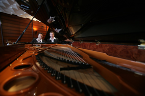 10年前 , 他們正式組成“歐米勒孖寶(Pianotainment)” 鋼琴組合 , 那是他們走向輝煌的開(kāi)始:熟練自如的雙手在黑白分明 的琴鍵上翻飛跳躍,一曲曲快樂(lè)的音符就從他們的指間順流而出 。隨著歐米勒孖寶5張CD的成功問(wèn)世 , 他們隨之聲名鵲起 , 在柏林 、巴黎、倫敦、紐約、拉斯維加斯等世界著名大都市的國(guó)際舞臺(tái)上 演奏。如今歐米勒孖寶已蜚聲樂(lè)界 , 成為歐美鋼琴明星,給古老的 鋼琴演奏形態(tài)注入了新的活力 , 并多次摘走包括英國(guó)牛津鋼琴挑戰(zhàn) 賽的“最佳創(chuàng)意獎(jiǎng)”等在內(nèi)世界各地的大小獎(jiǎng)項(xiàng) , 藝術(shù)事業(yè)蒸蒸日 上,如日中天。