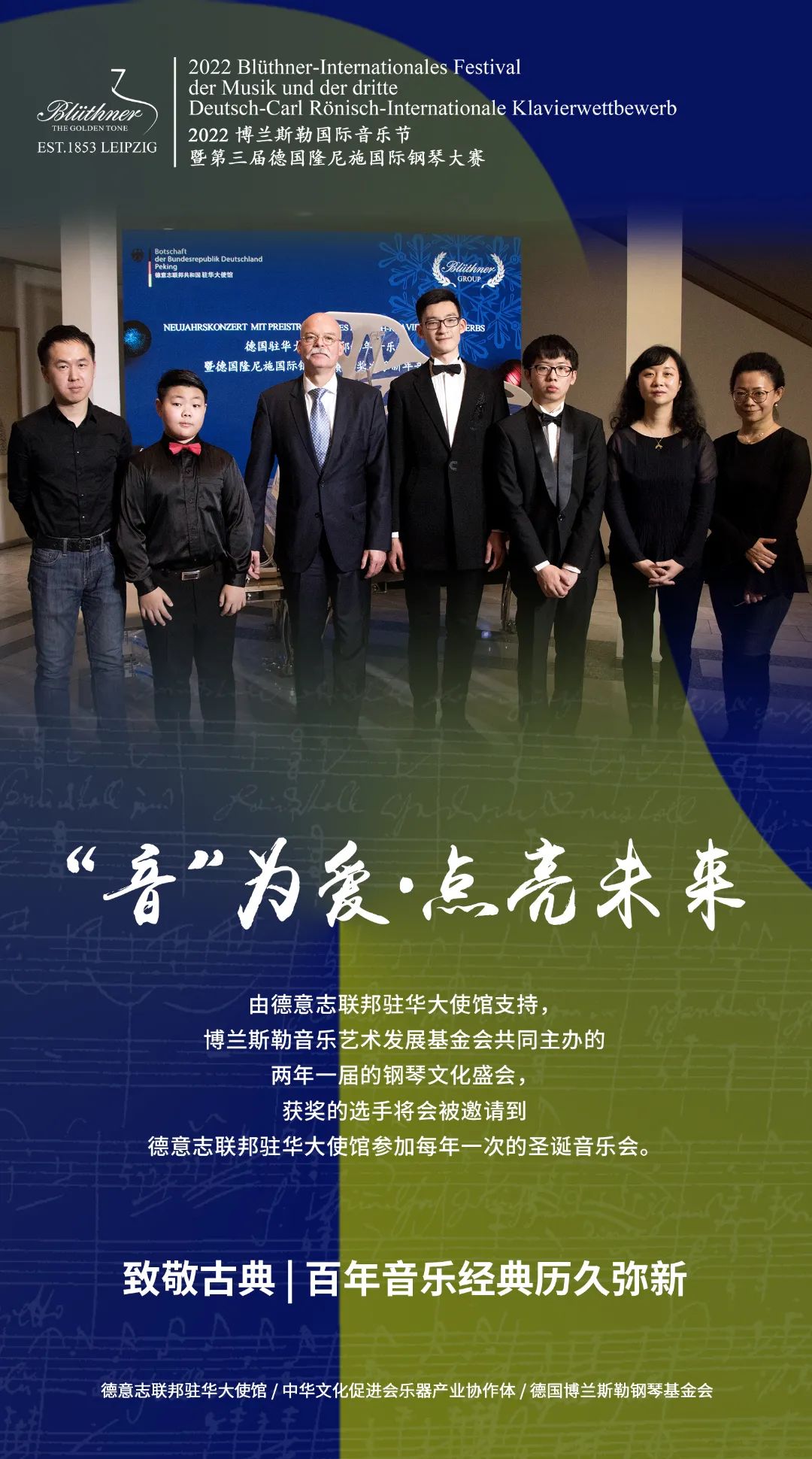 兩年一屆的鋼琴文化盛會(huì),獲獎(jiǎng)的選手將會(huì)被邀請(qǐng)到德意志聯(lián)邦駐華大使館參加每年一次的圣誕音樂會(huì)。