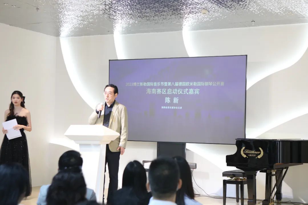 開場,主持人傅莉莎介紹德國博蘭斯勒鋼琴和2023博蘭斯勒國際音樂節(jié)暨第八屆德國歐米勒國際鋼琴公開賽海南賽區(qū)詳情。隨后,海南省音樂家協(xié)會主席陳新教授、海南大學音樂與舞蹈學院鋼琴系主任吳春丹副教授先后為比賽致辭。