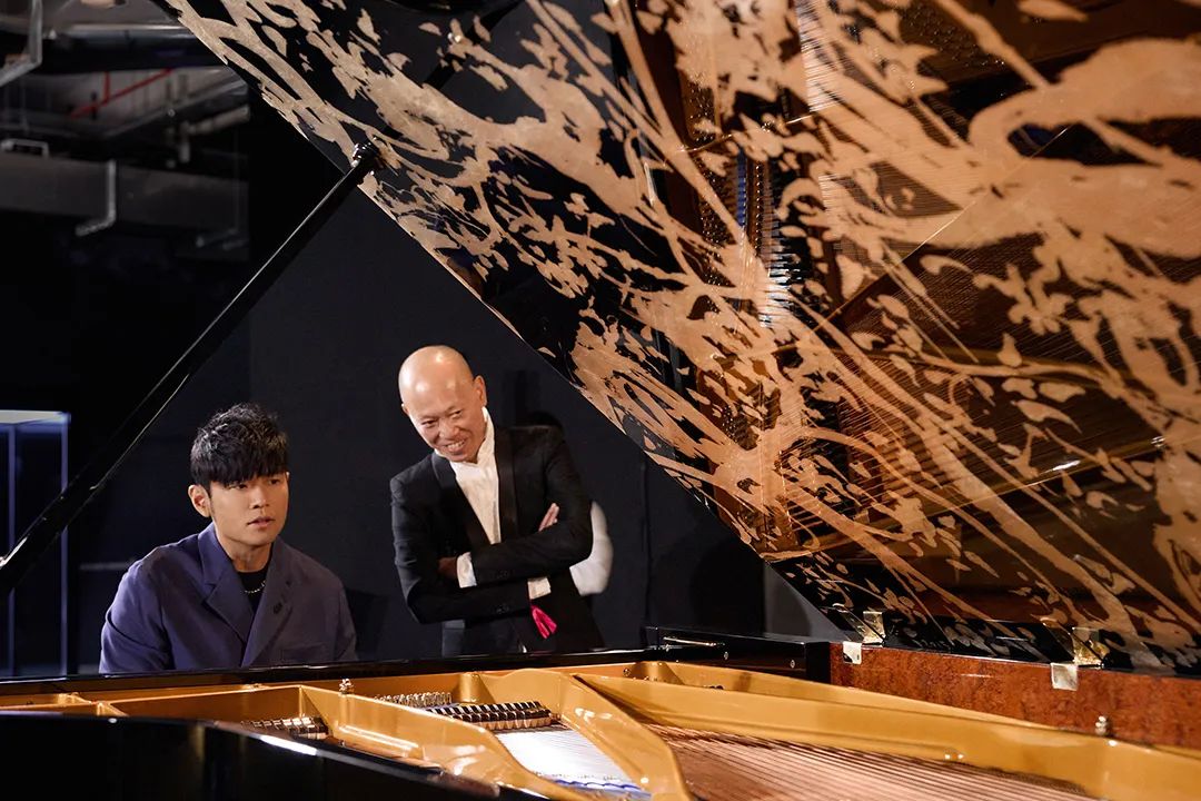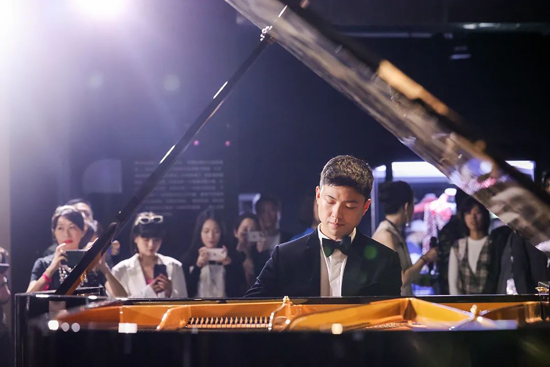 藝術(shù)家鮑楊在《藝起“杰”作》VIP 預(yù)展現(xiàn)場(chǎng)進(jìn)行鋼琴獨(dú)奏